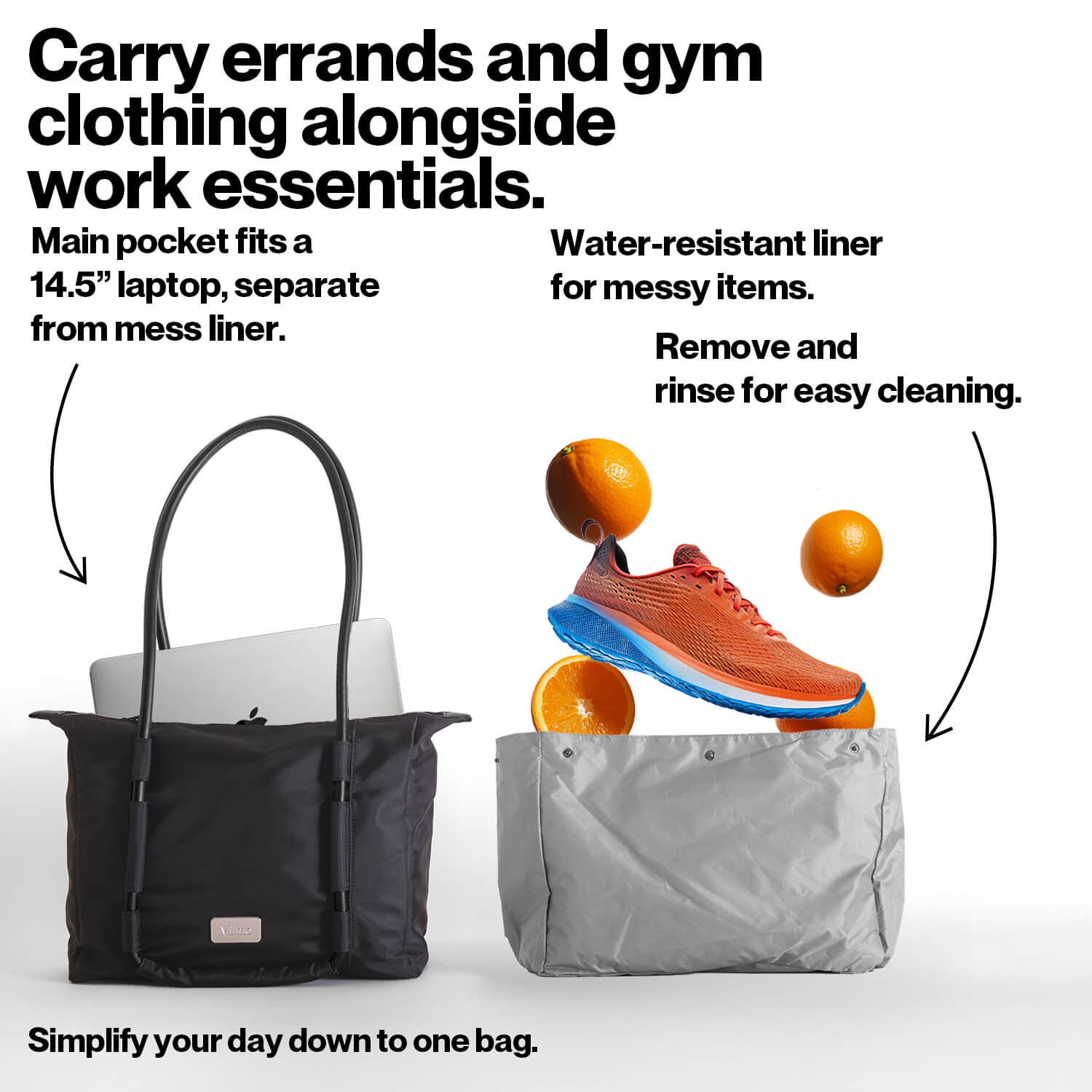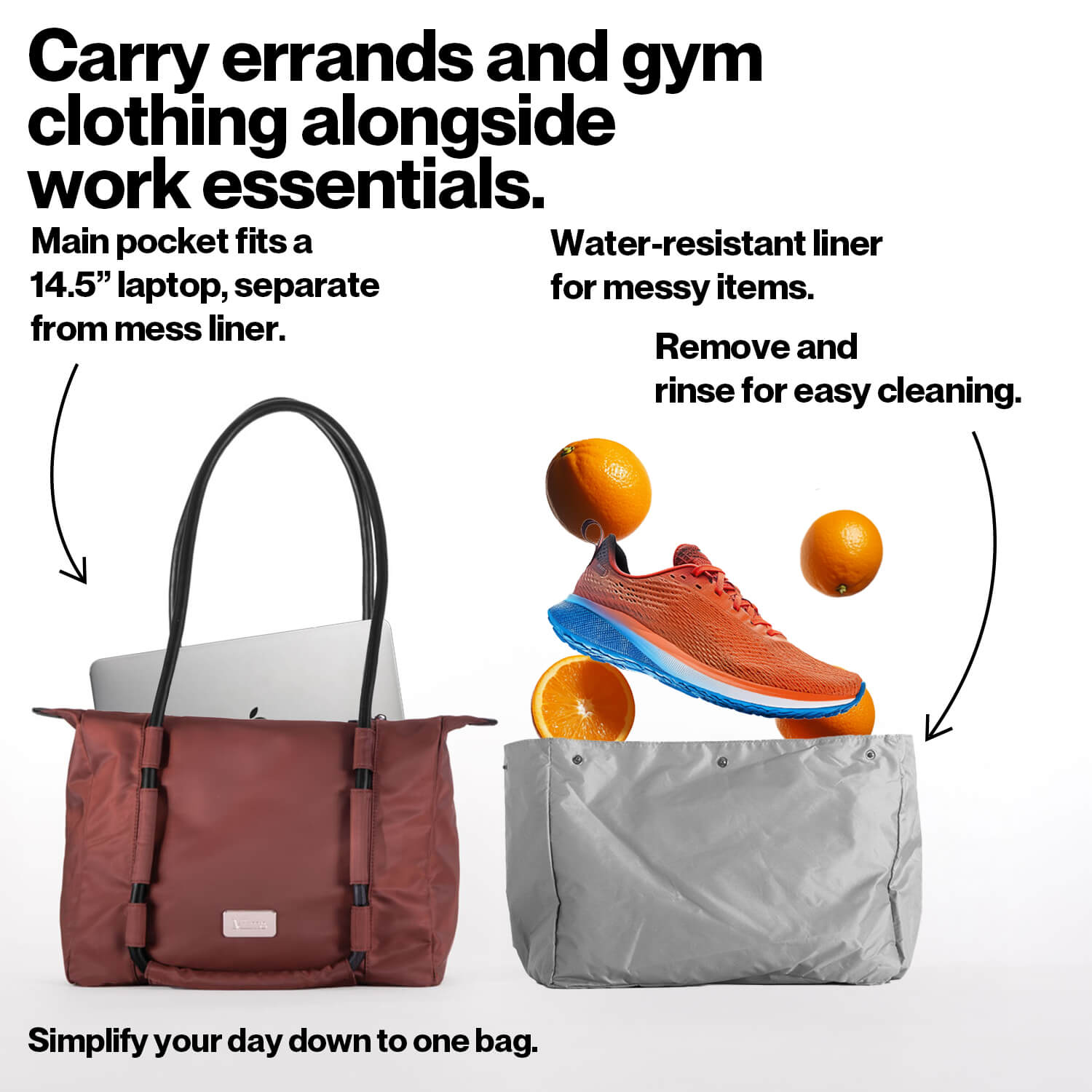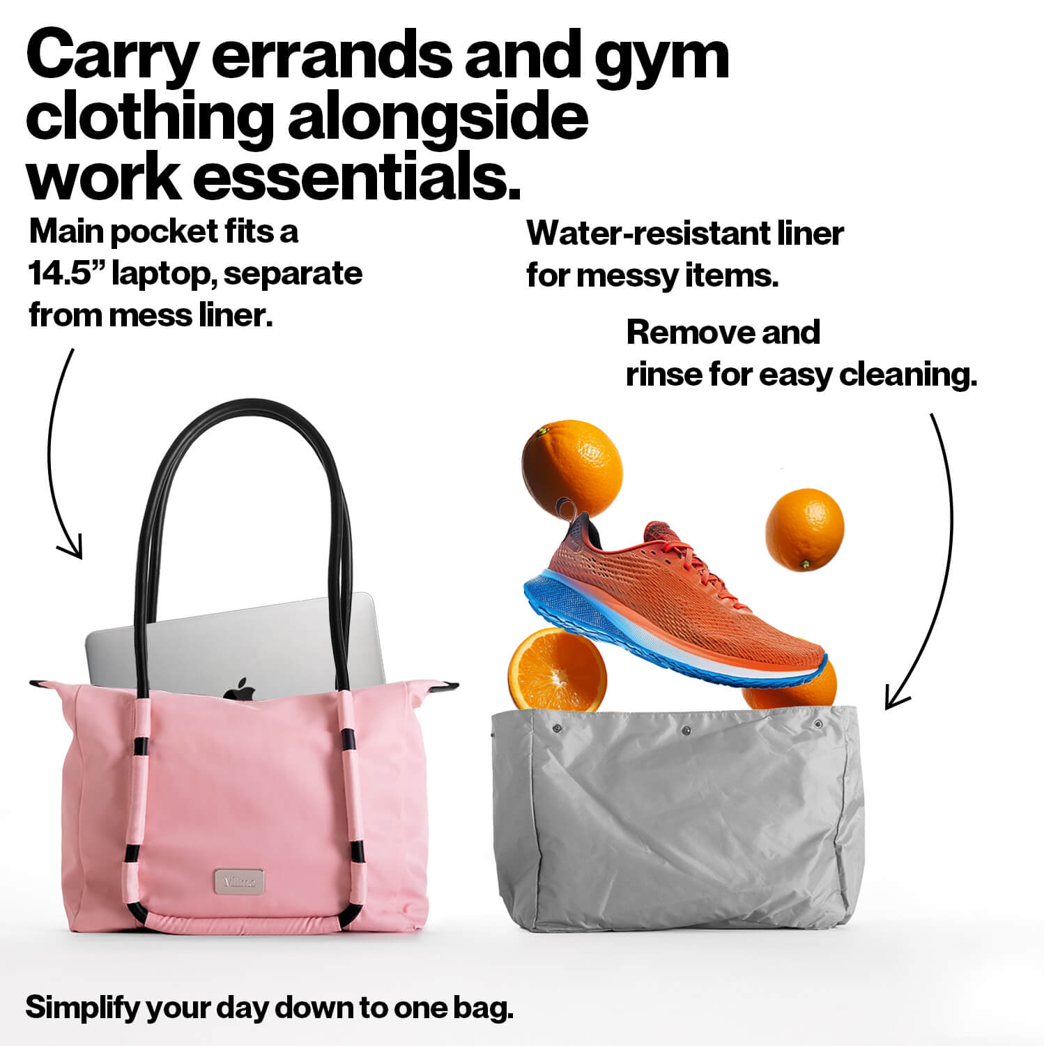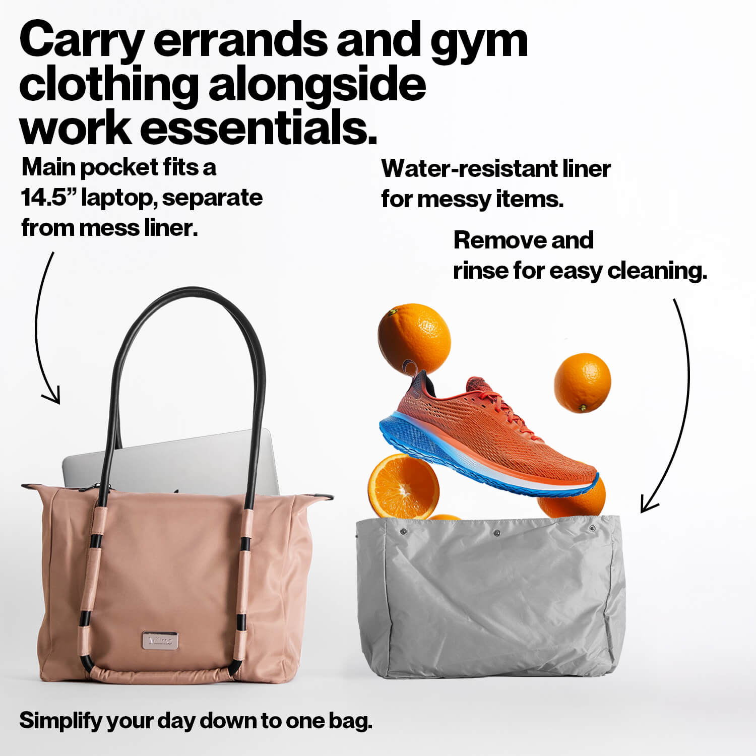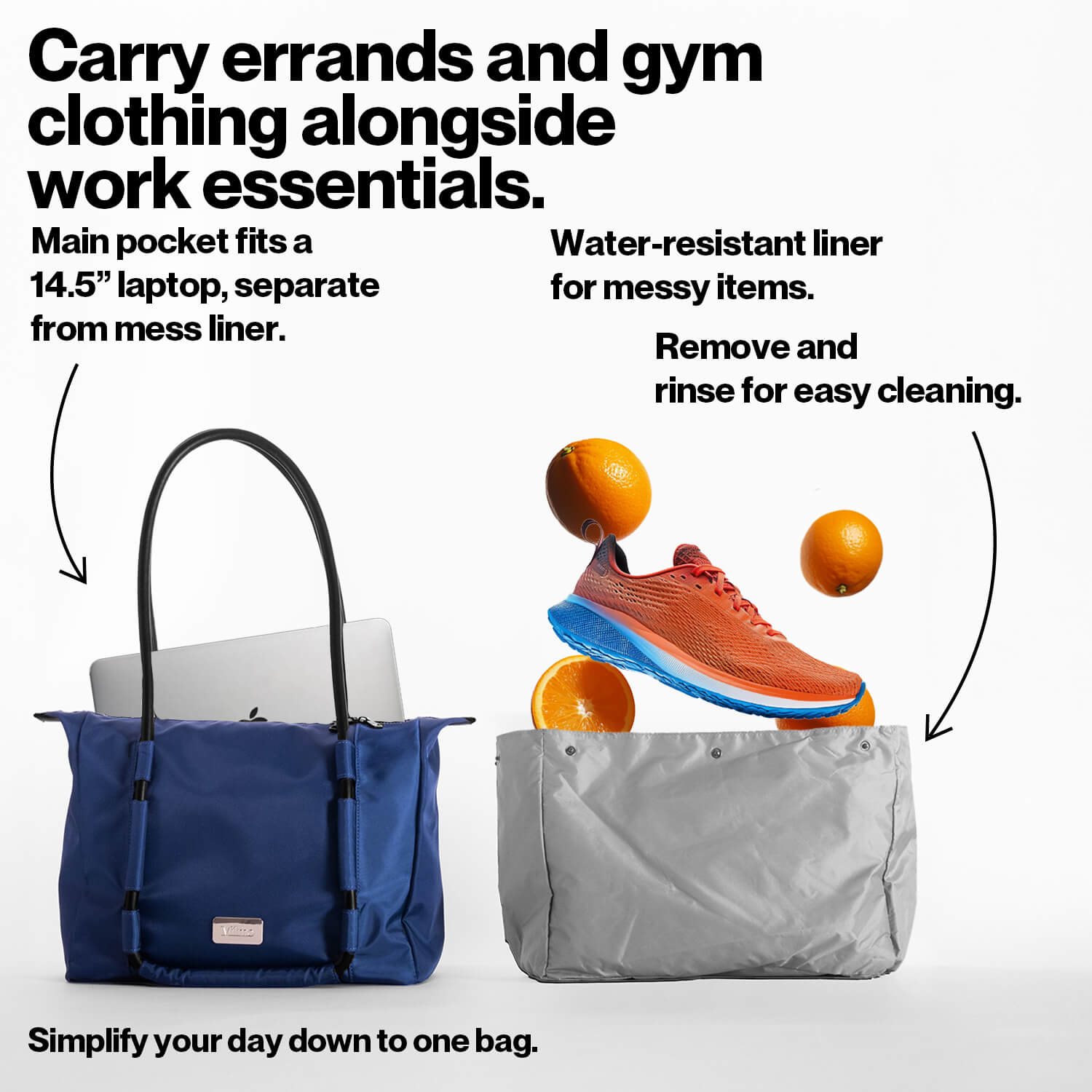 The work bag that can handle groceries, exercise, and travel. Ditch the extra bags.