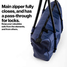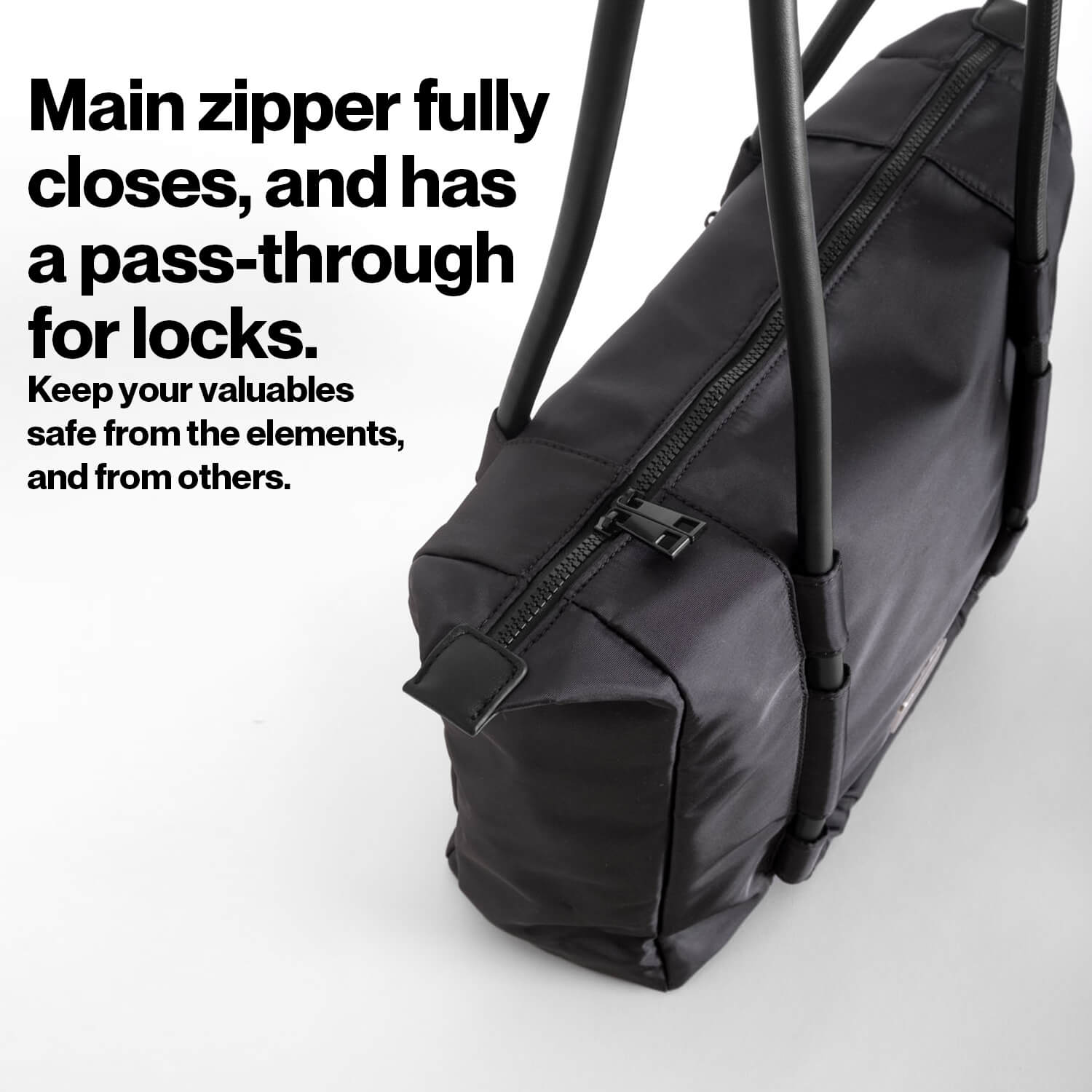 - Fully closing zipper with lock pass-through