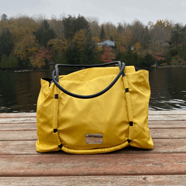 A solution was designed - a bag that could be worn to an office with an ample amount of space to carry produce, and a waterproof, removable, washable liner to protect everything else.